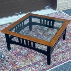 1990’s Ethan Allen American Impressions Square Coffee Table 24-8400 Cherry With Black Base