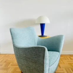Guglielmo Veronesi Perla Lounge Chair For Isa Bergamo, 1950’s Newly Re-Upholstered With Matching Ottoman