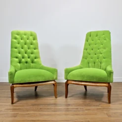 1950’s Tufted Green Velvet Tall Back Chairs In The Manner Of T.h. Robsjohn Gibbings