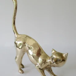 Mid-Century 1960’s-1970’s Large Polished Brass Cat With Accentuated Tail “On The Prowl”