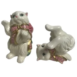Vintage 90’s Fitz And Floyd Kittens And Roses Retired Ceramic Figurines- Set Of 3