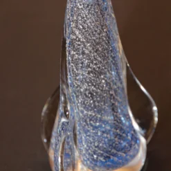 Vintage Murano Twisted Spiral Sky Blue And Clear Art Glass With Silver Murine 1960’s