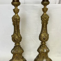 Antique French Brass Altar Prickets/ Candlesticks Circa Early 1900’s- A Pair
