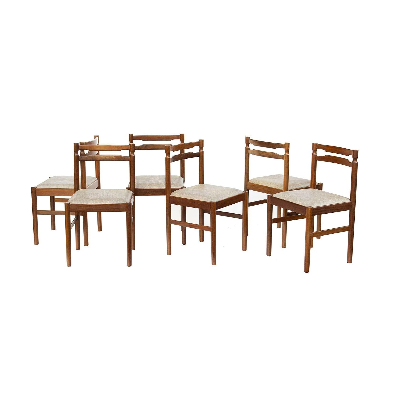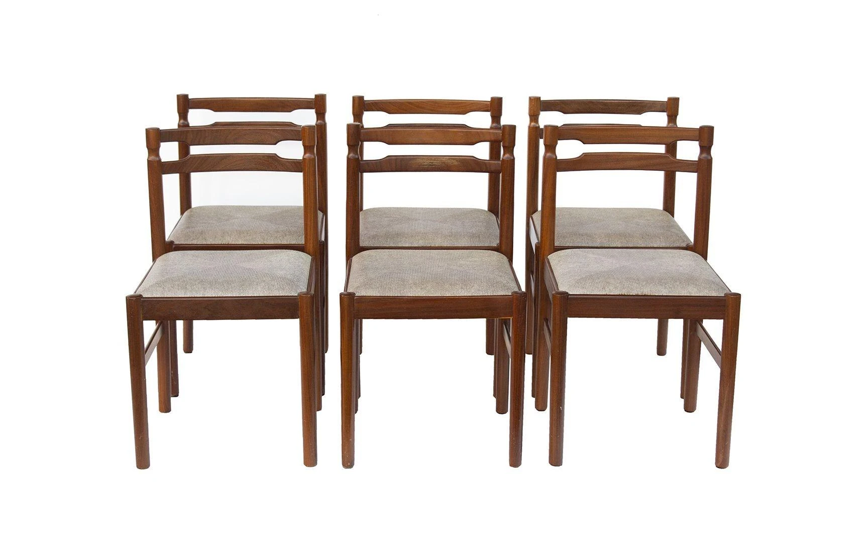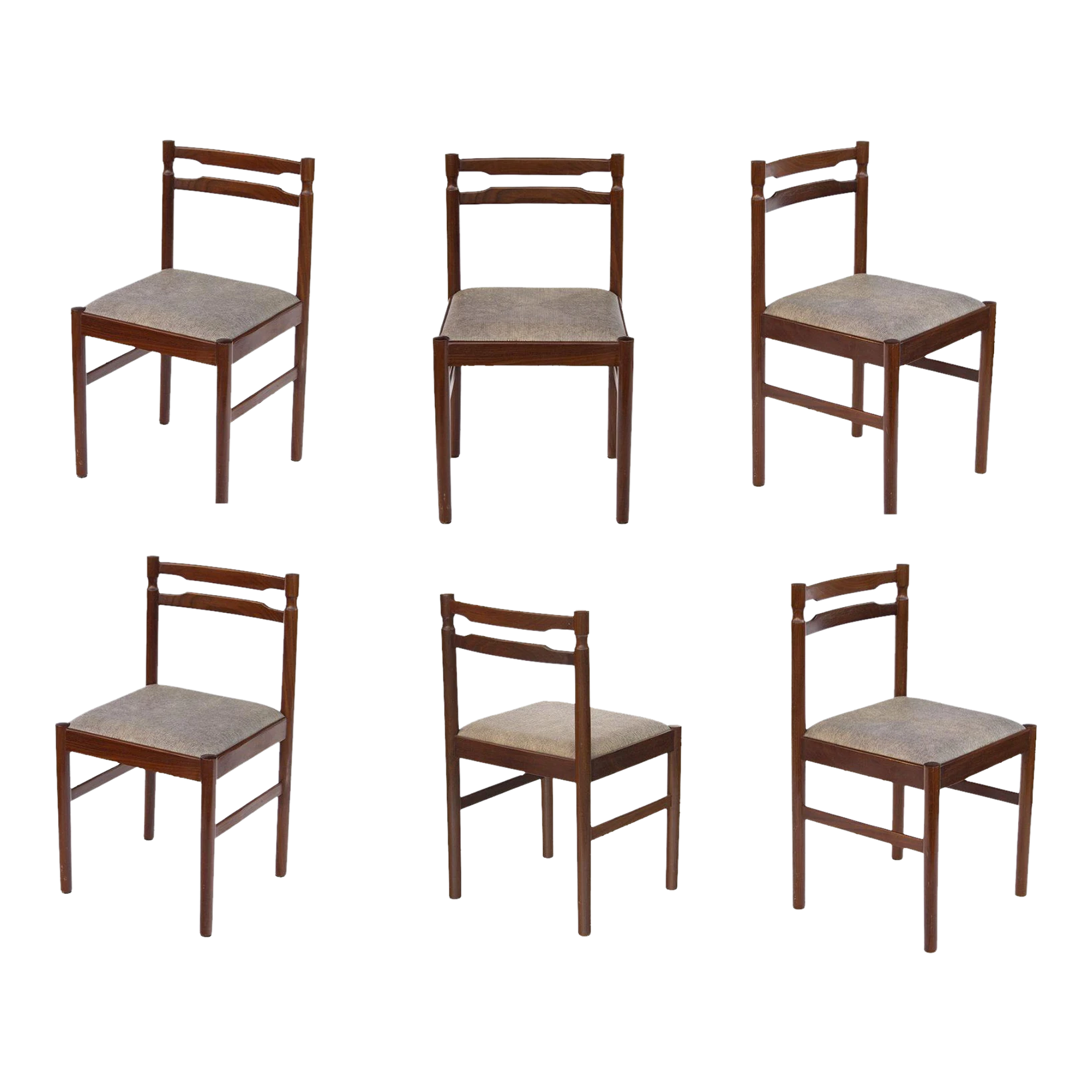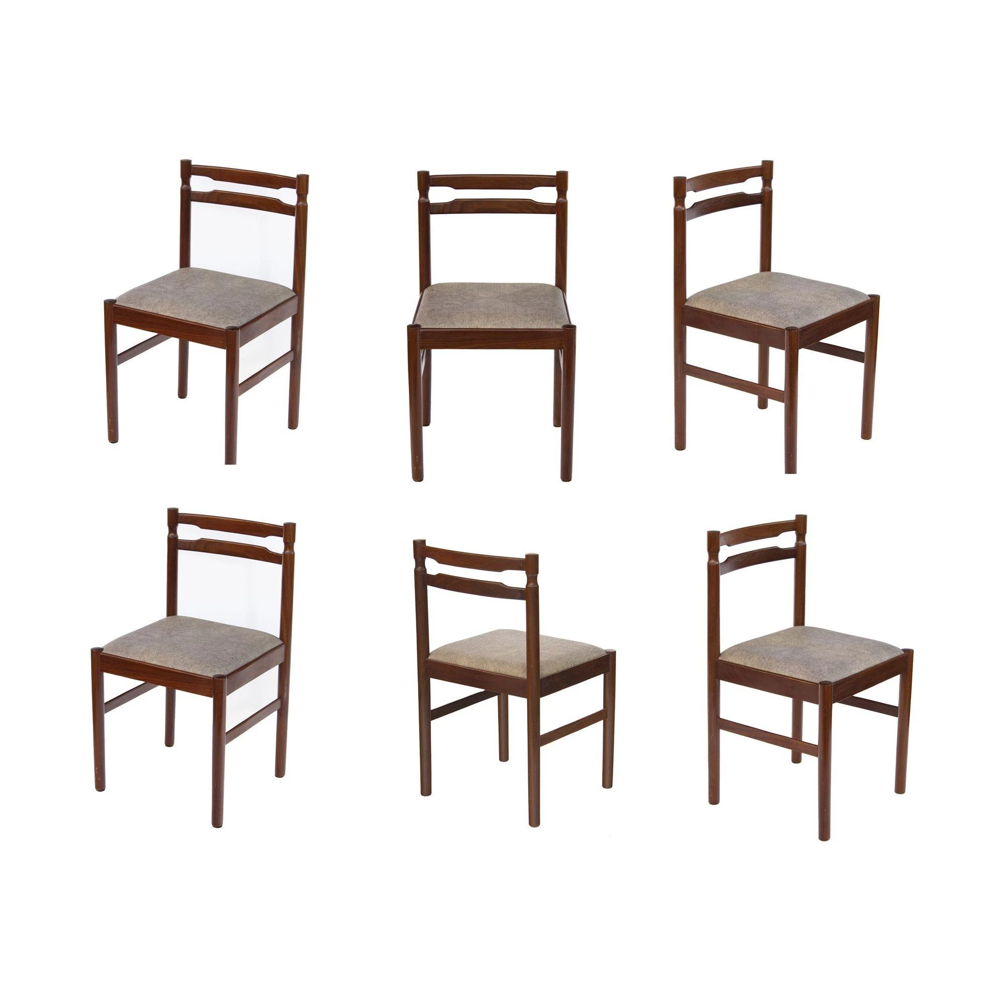 Set of six Scandinavian dining chairs in teak or rosewood. These are a nicely turned set in rich …