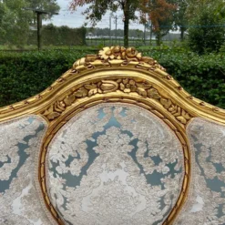 1940’s French Louis Xvi Sofa Set In Gold Beech And Damask-3 Pieces