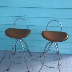 Arrben 1980’s Chrome And Leather Bar Stools Italy – Set Of 2