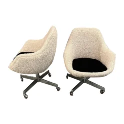 Curated Mid Century Dining/ Office/Accent Chair With New Cream & Black Boucle 1960’s Circa Designed By Knoll (4 Available)