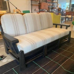 Ebony Ash And Linen Sofa, Dutch, 1960’s