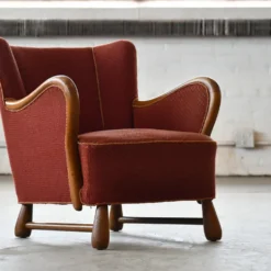 Rare Danish Easy Lounge Chair In Mahogany Attributed To Otto Færge, 1940’s