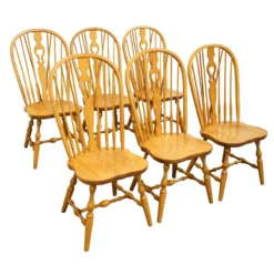 Set Of 6 S. Bent Bros. Solid Oak Country French Windsor Dining Chairs 676 923 793