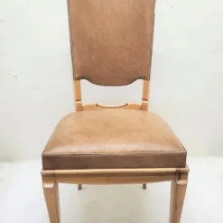 Set Of Six 1940’s Dining Chairs In Beech With Nickel Detail, Attributed To Rene Prou