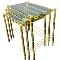 1970’s Brass Faux Bamboo Nesting Tables With Glass A Set Of 3