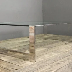 1970’s Polished Steel And Glass Coffee Table