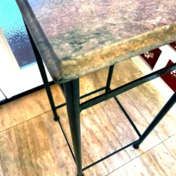 80’s Tall Solid Painted Iron Metal Square Side Table With Removable Beveled Marble Top
