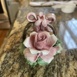 Vintage Italian Capodimante Basket Of Pink Roses Circa 1960’s