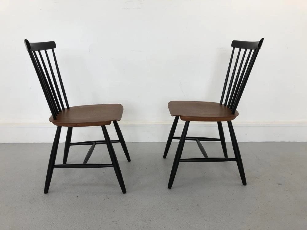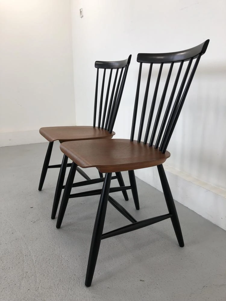 Chair designed by Sven Erik Fryklund for the Swedish manufacturer Hagafors and manufactured in the 1960s. The furniture has a beautiful detail in the scrolled edge of the plywood seat. The chair is after professional carpentry restoration. Signed. This piece has an attribution mark,