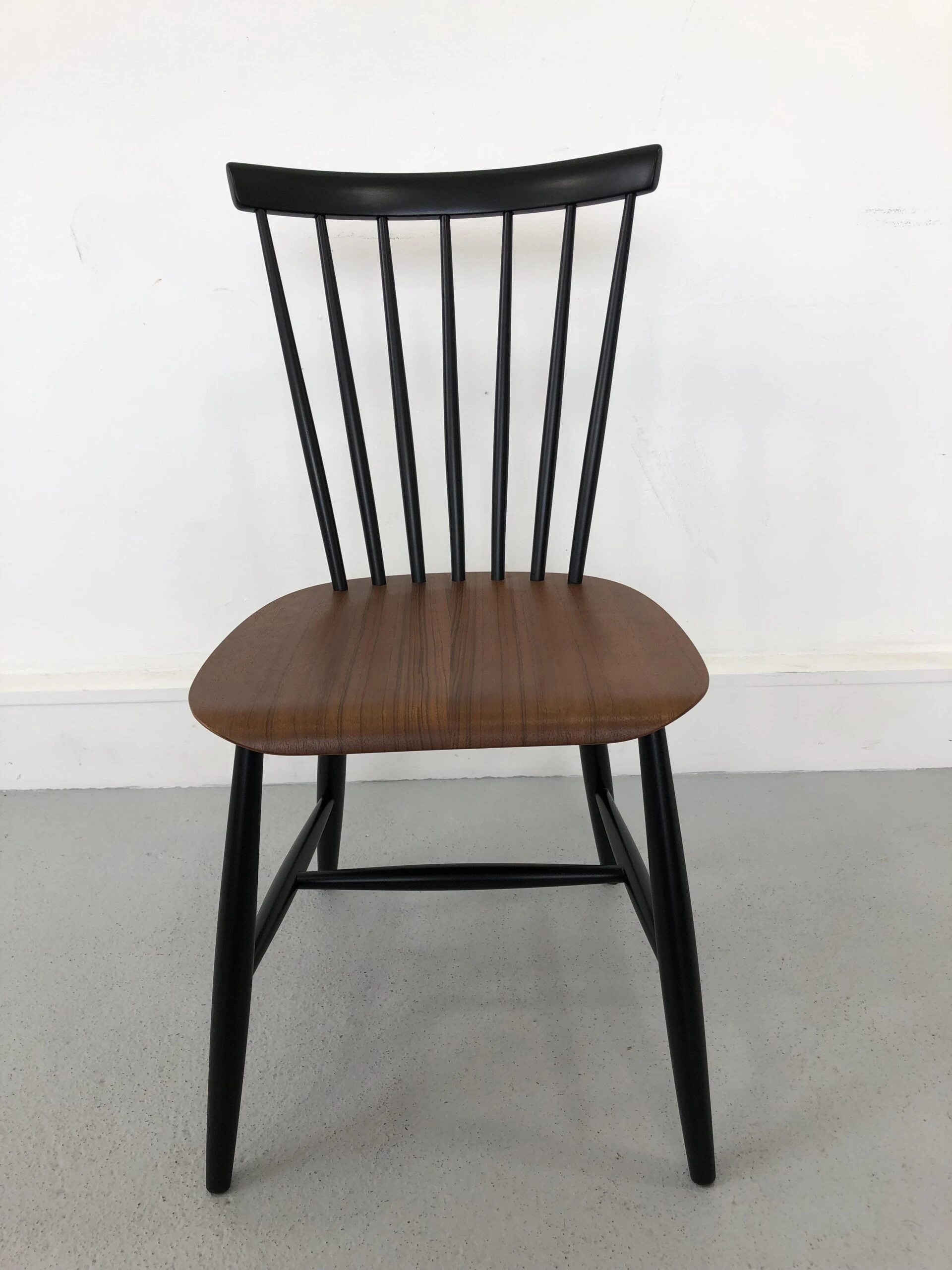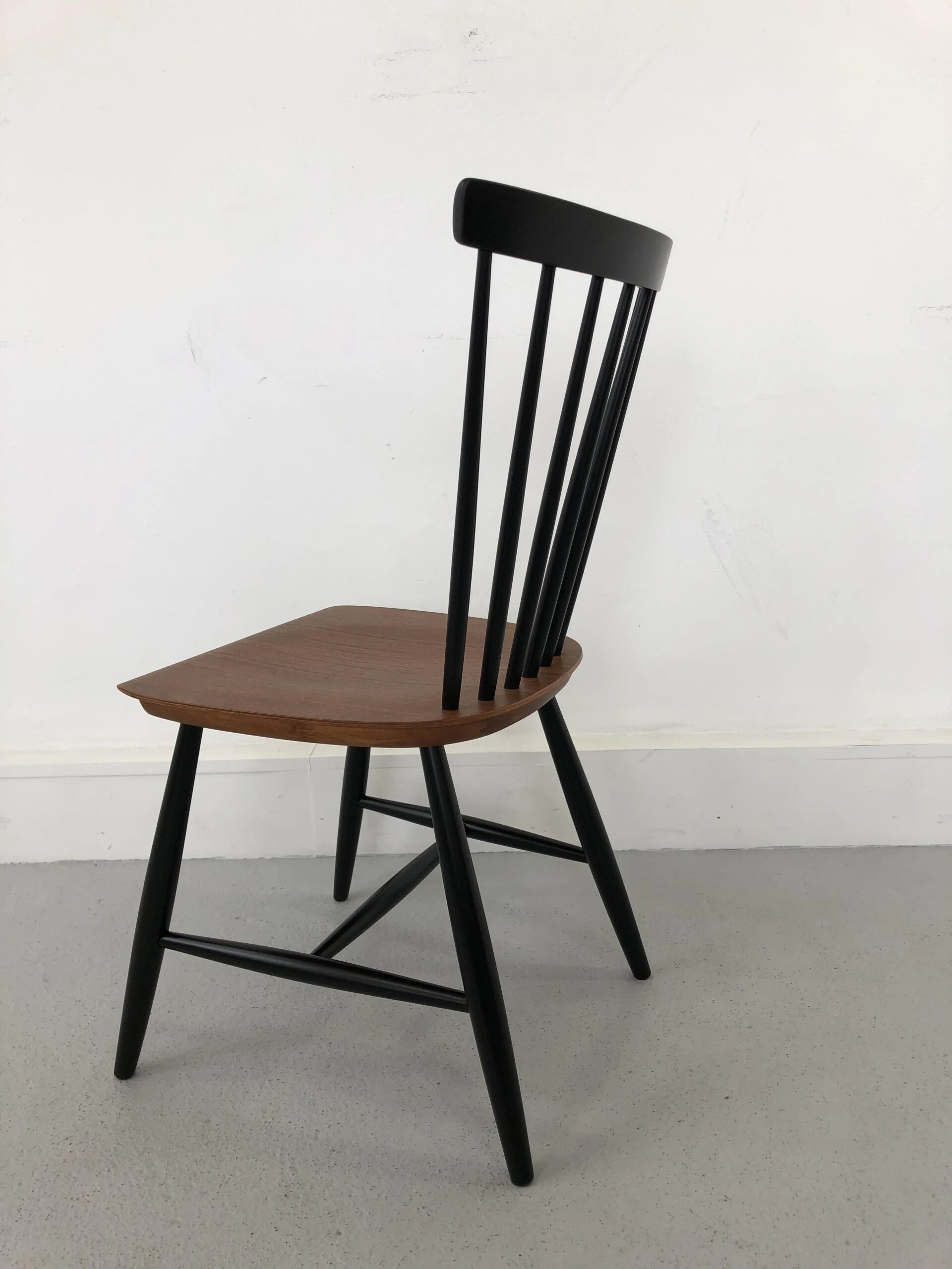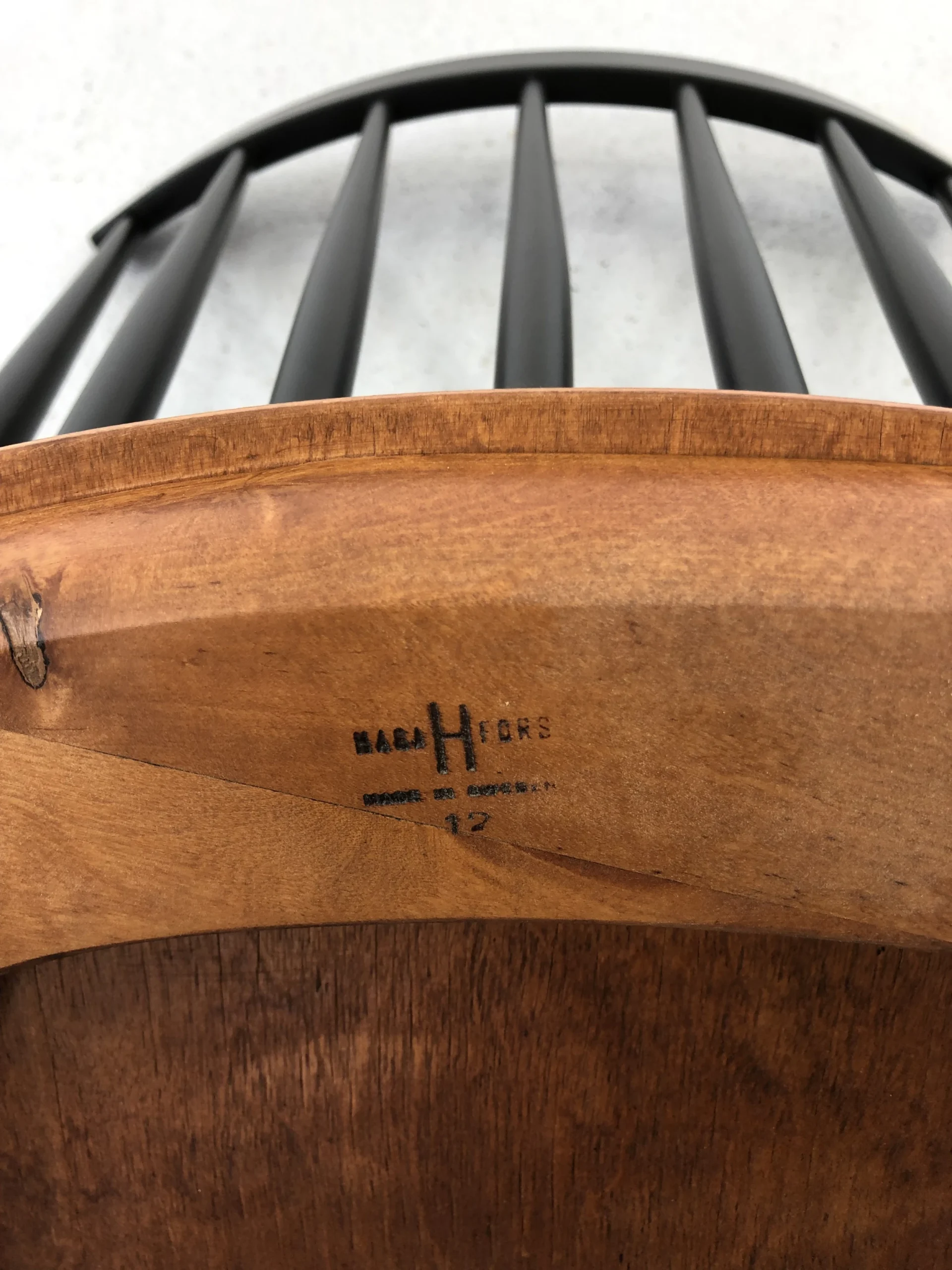 Chair designed by Sven Erik Fryklund for the Swedish manufacturer Hagafors and manufactured in the 1960s. The furniture has a beautiful detail in the scrolled edge of the plywood seat. The chair is after professional carpentry restoration. Signed. This piece has an attribution mark,
