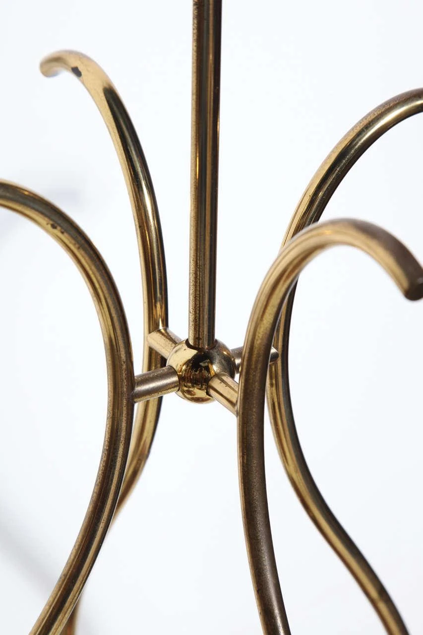 Pair of sculptural french style scrolled Brass Wire and Walnut Table Lamps. Featuring four joined curved S shape patinated Brass …