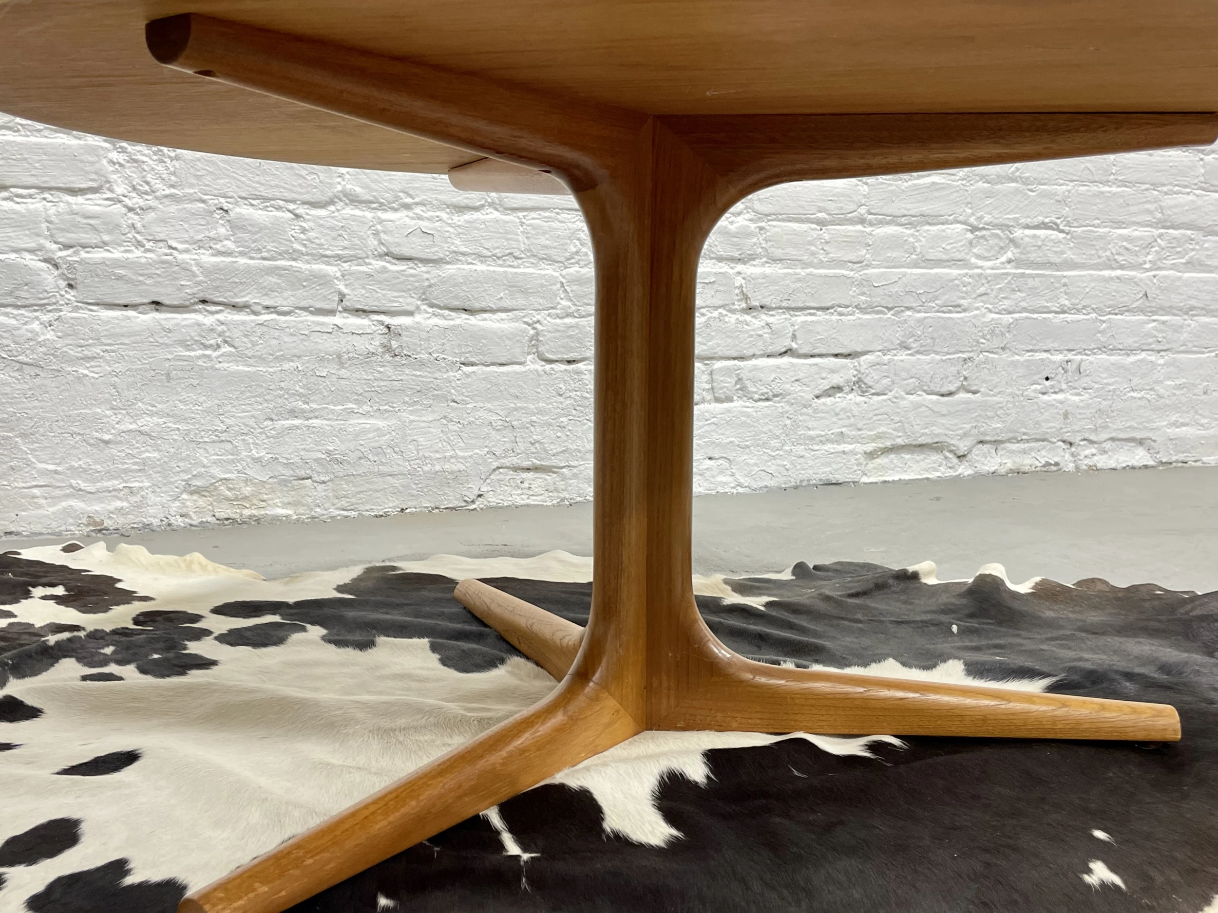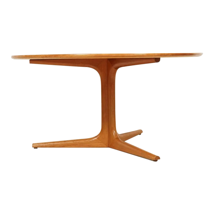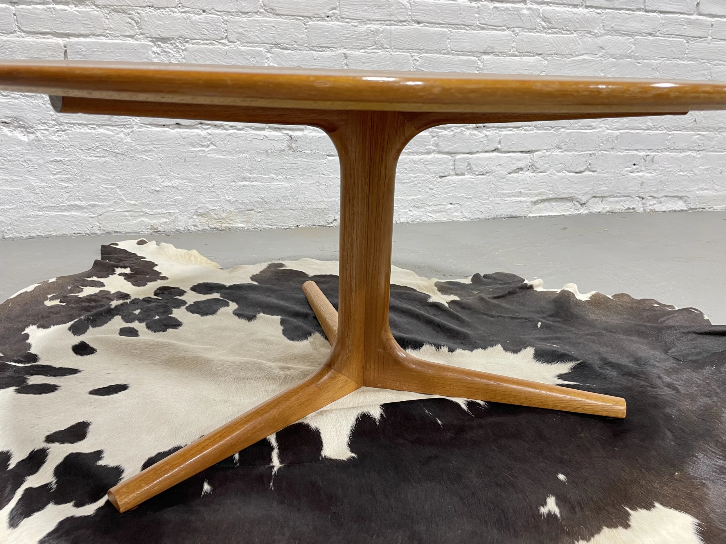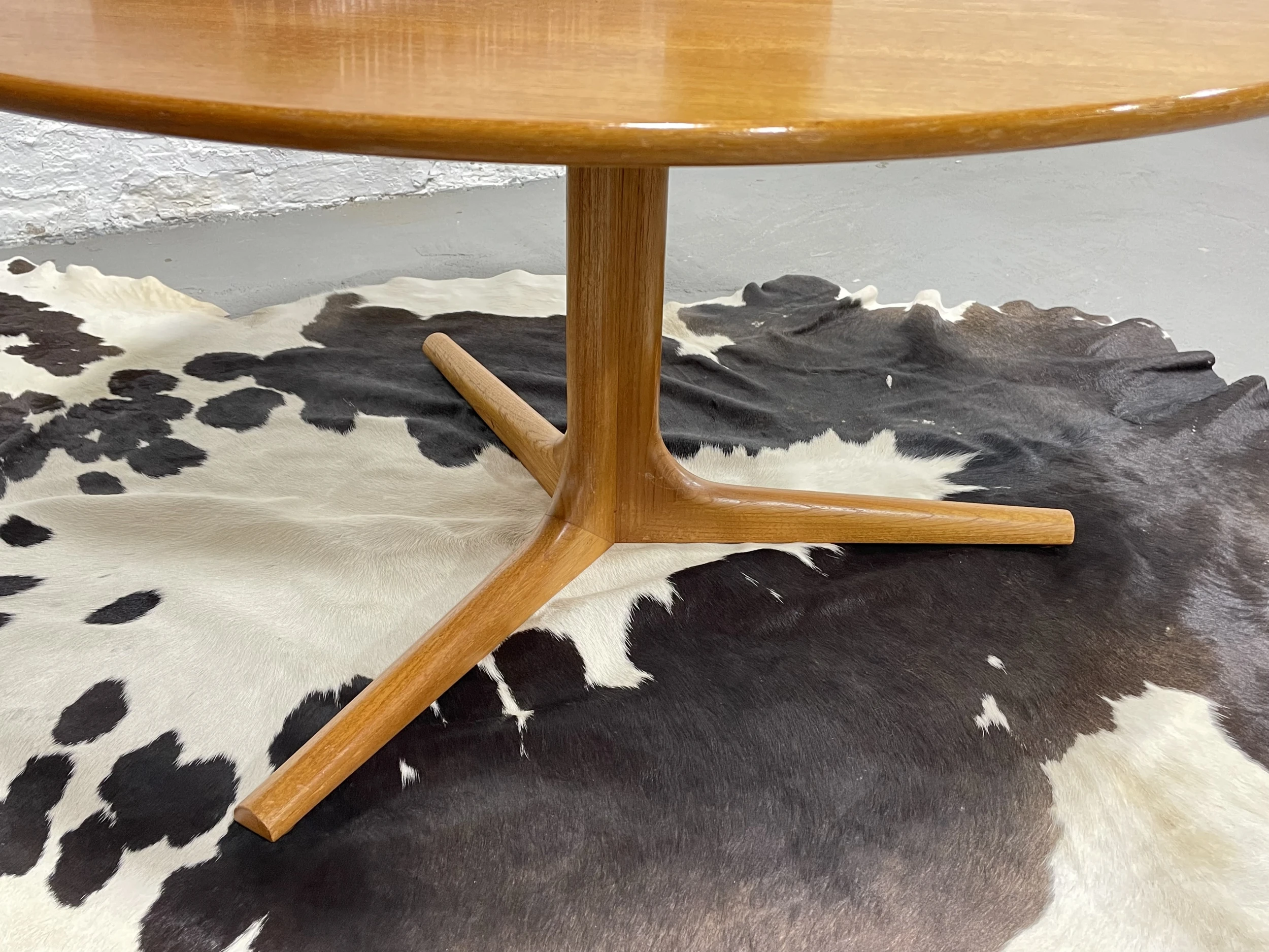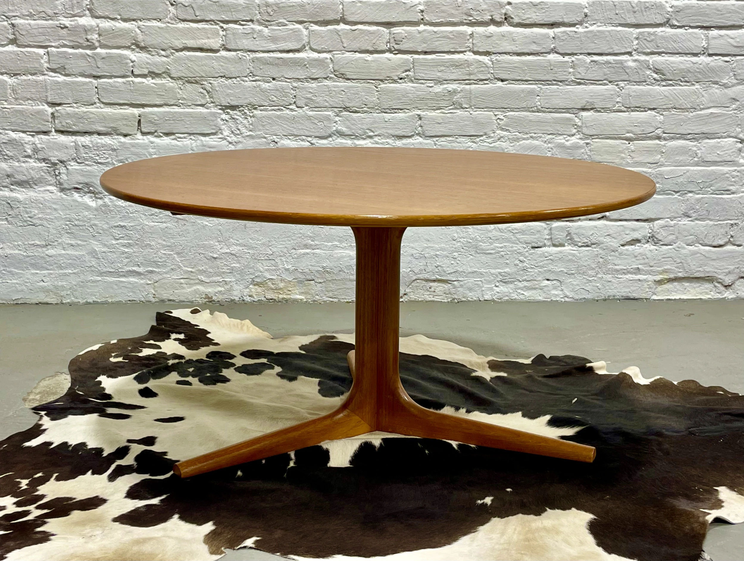 Teak Mid Century Modern Round coffee table featuring a classic + simple design. Solid + sturdy table with unique three …