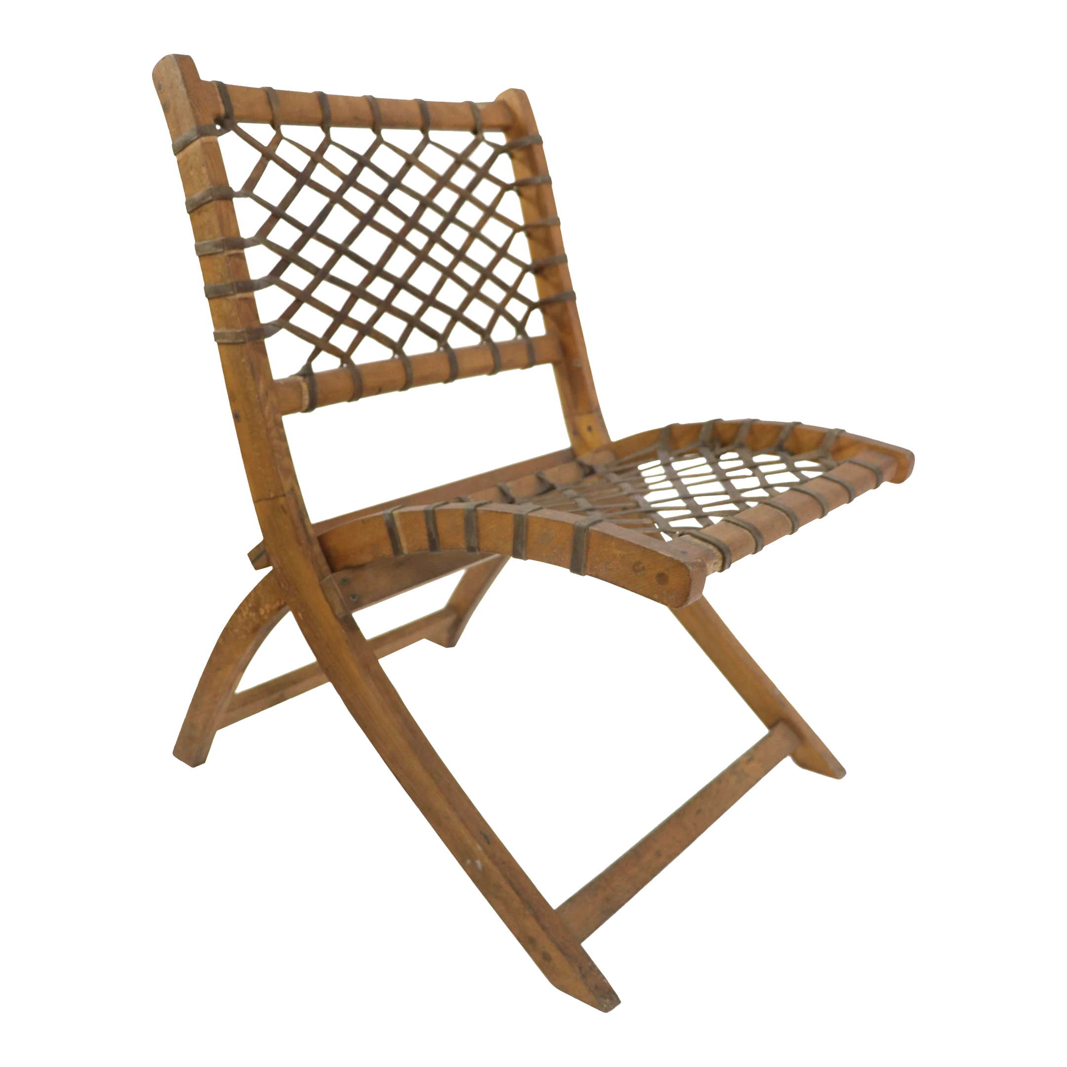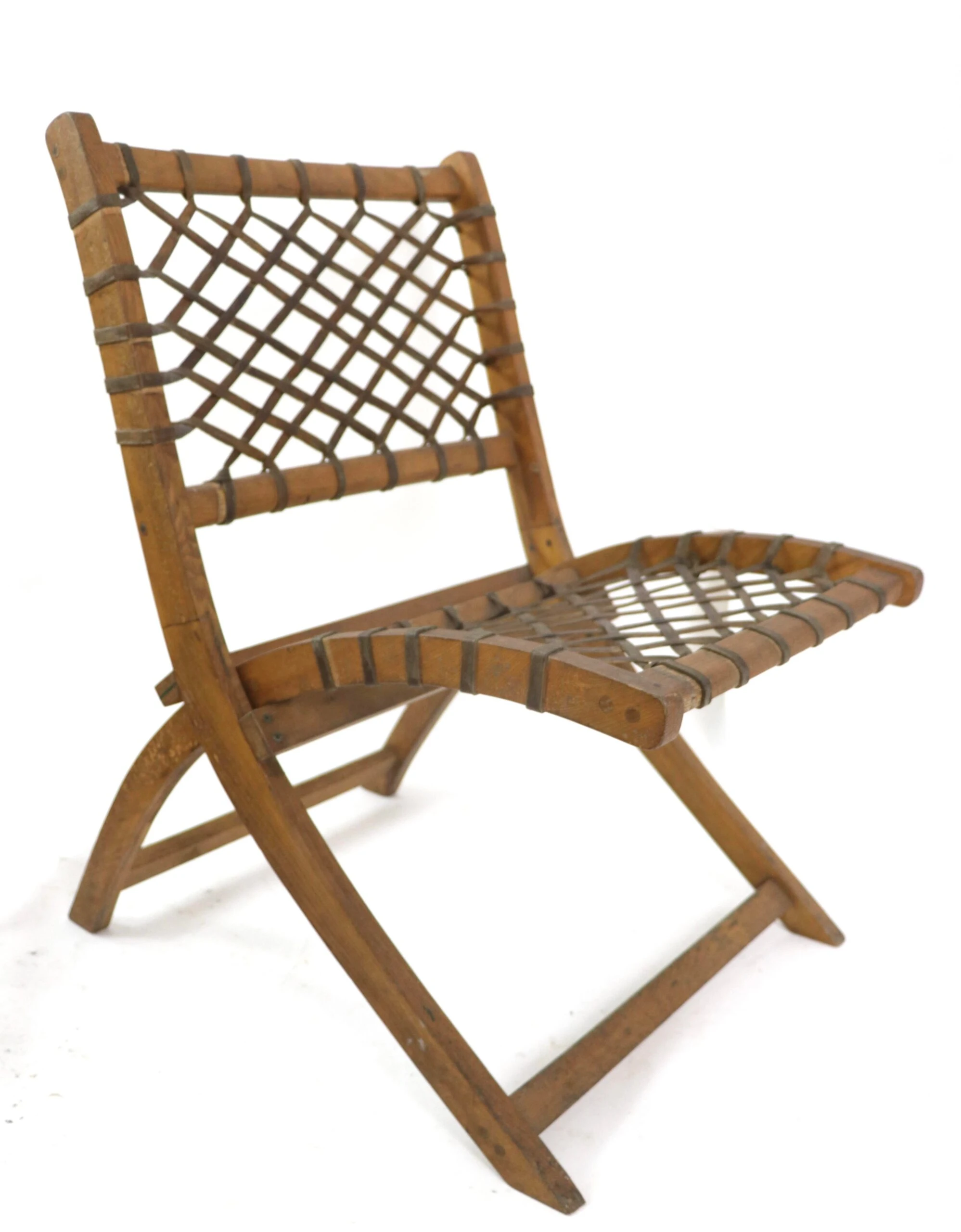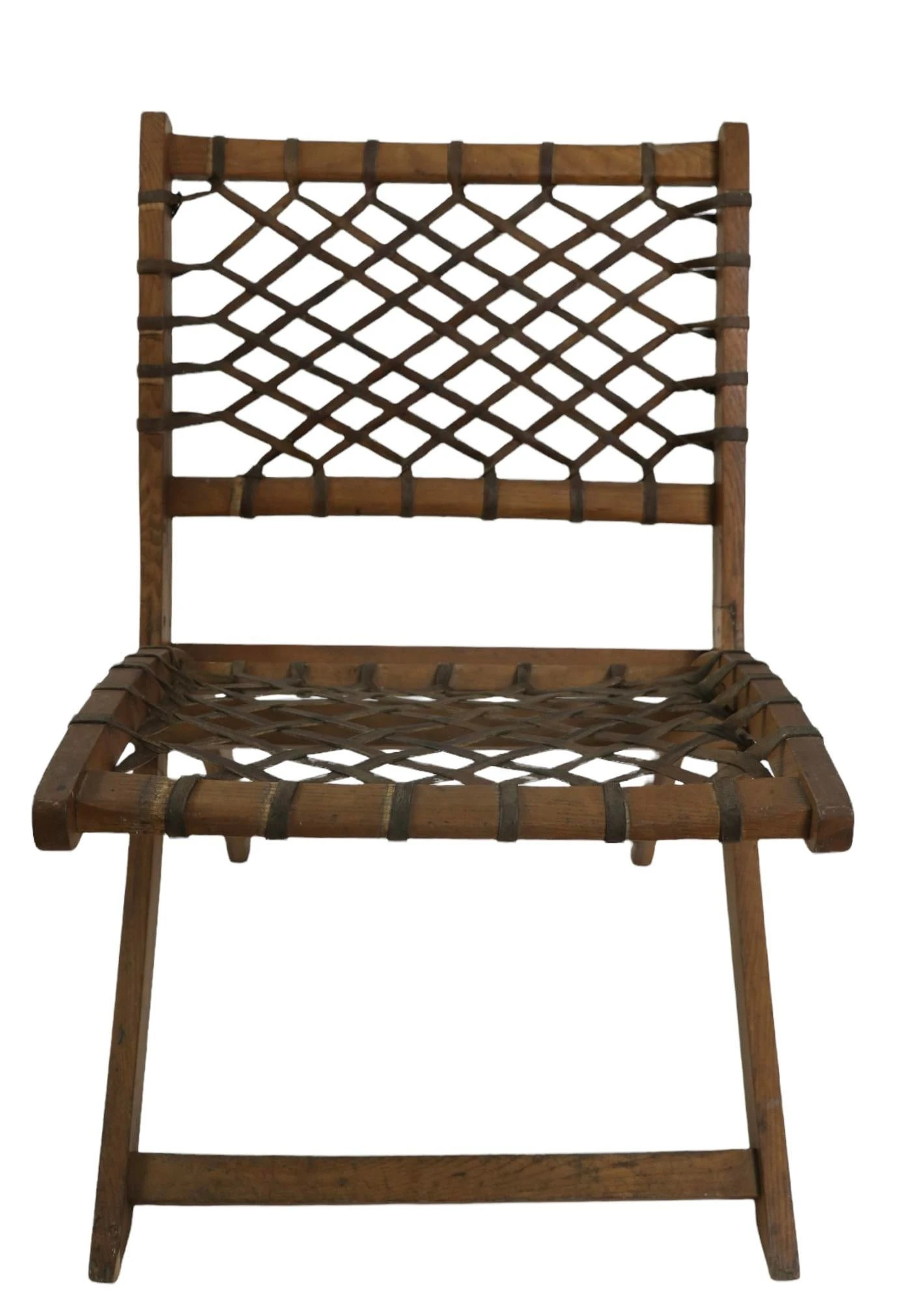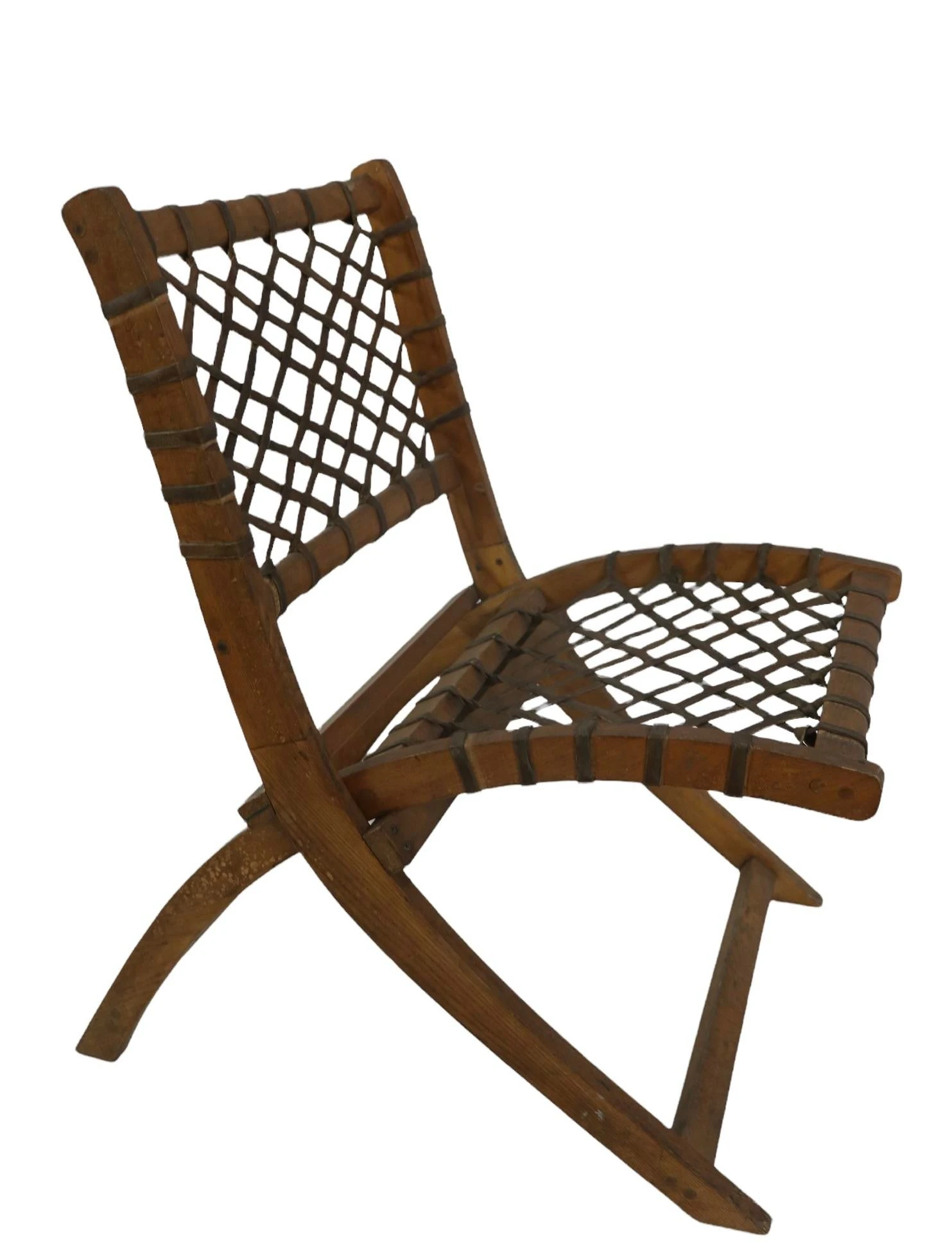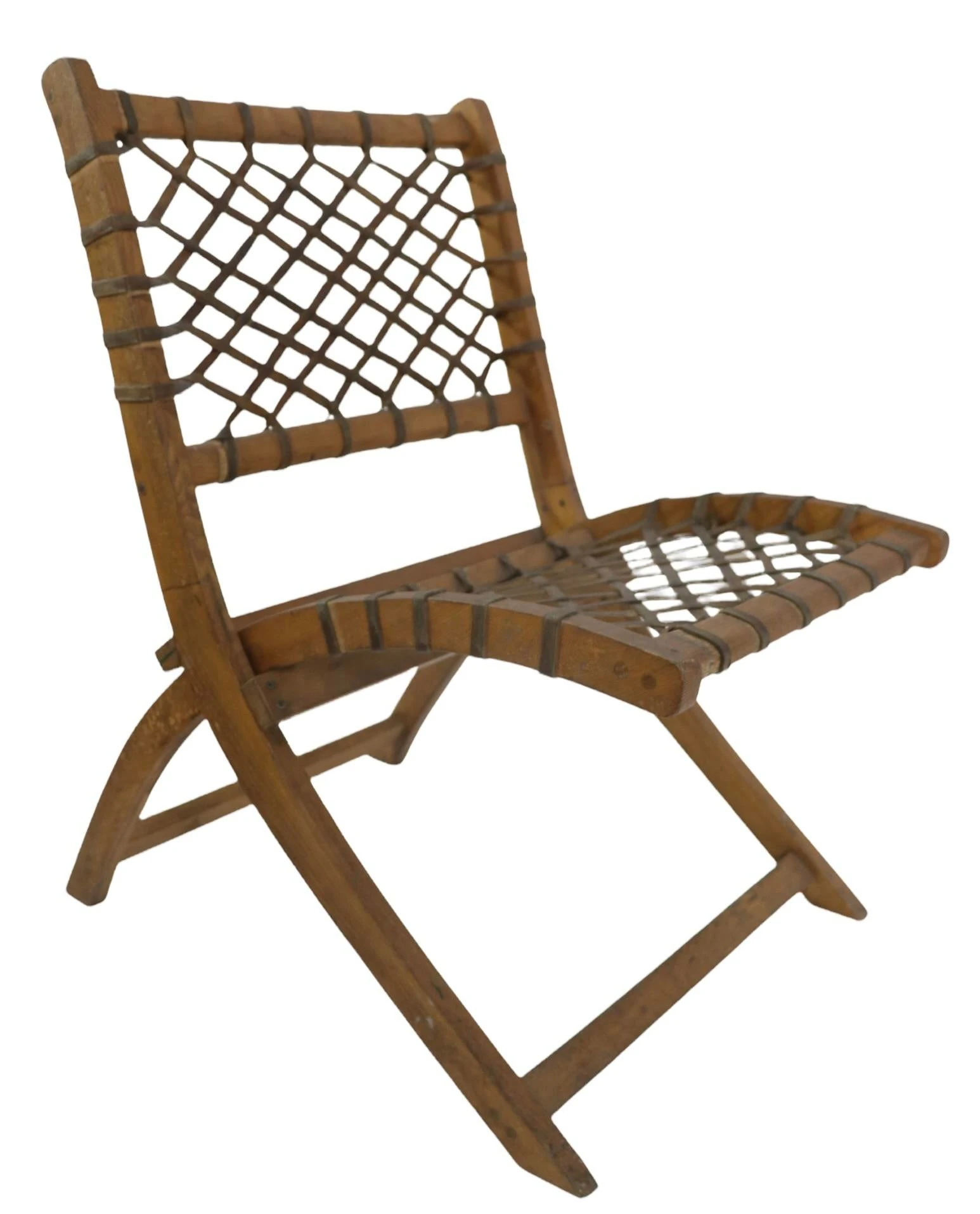 Unusual folding camp lounge chair by Snow Shu Chairs Tubbs Vt. Barcelona chair sophistication meets Adirondack rustic charm. Chair folds …