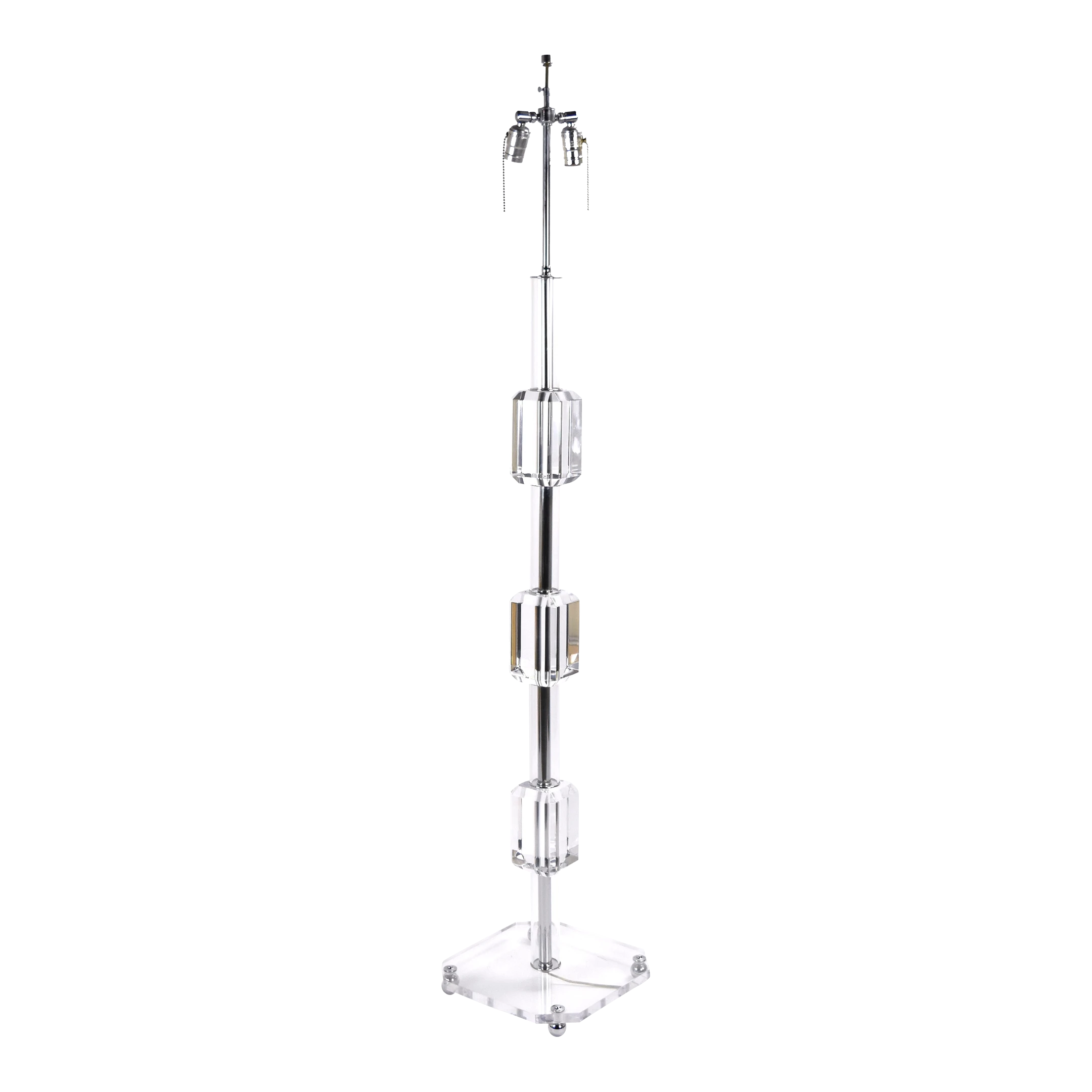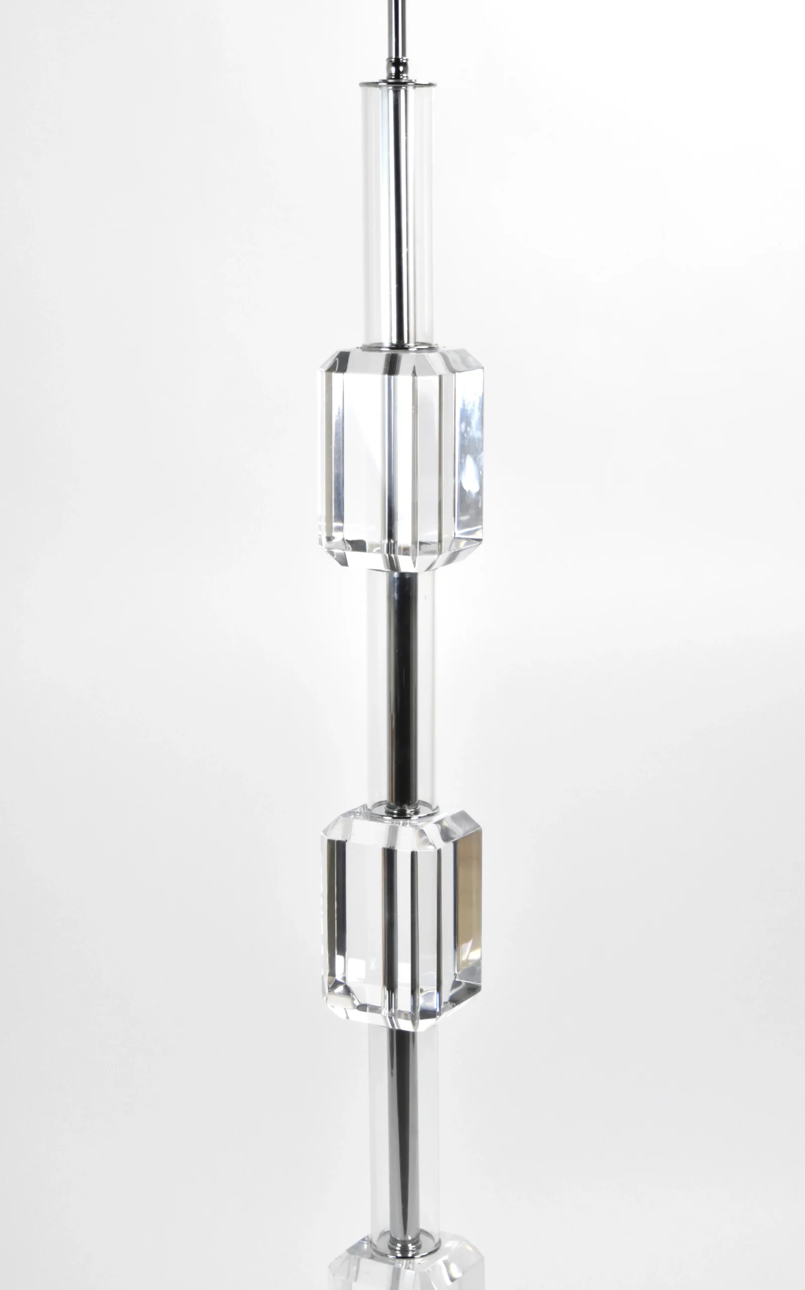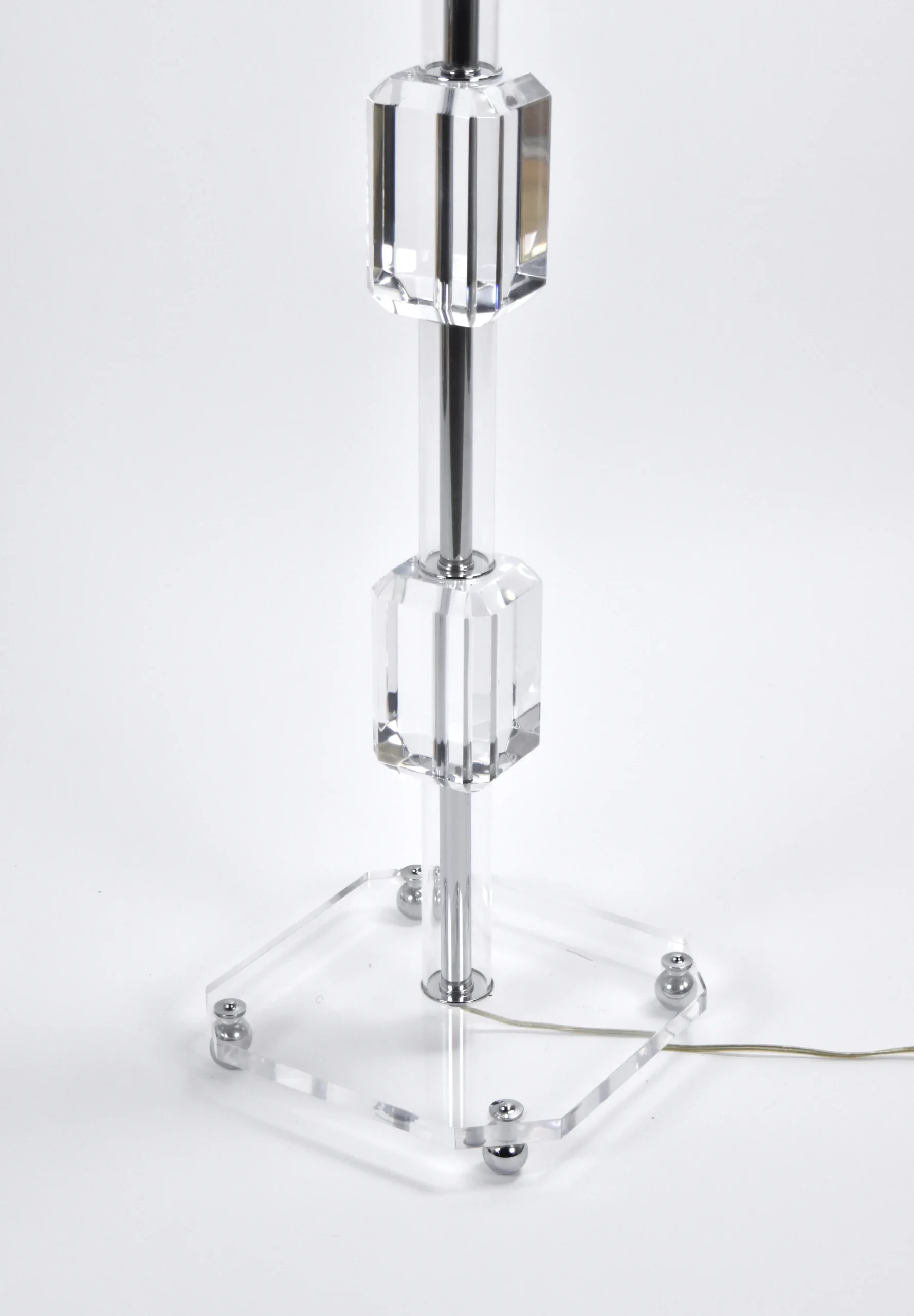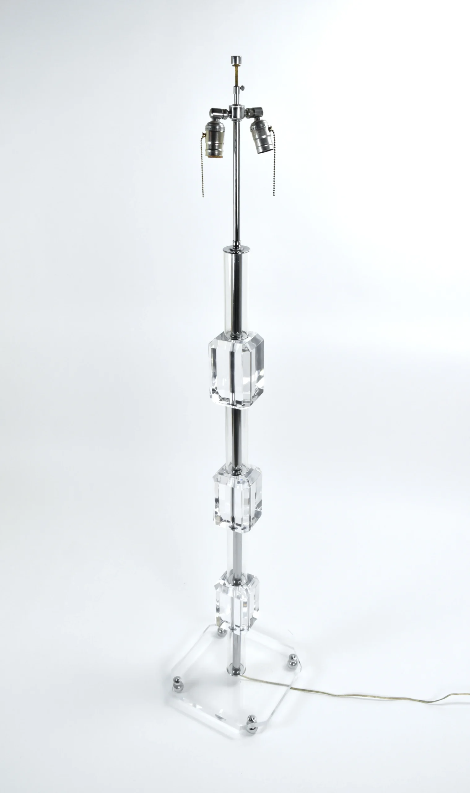 Gorgeous Ralph Gambaro for Les Prismatiques chunky acrylic block floor lamp with chrome hardware including dual swivel sockets and a …