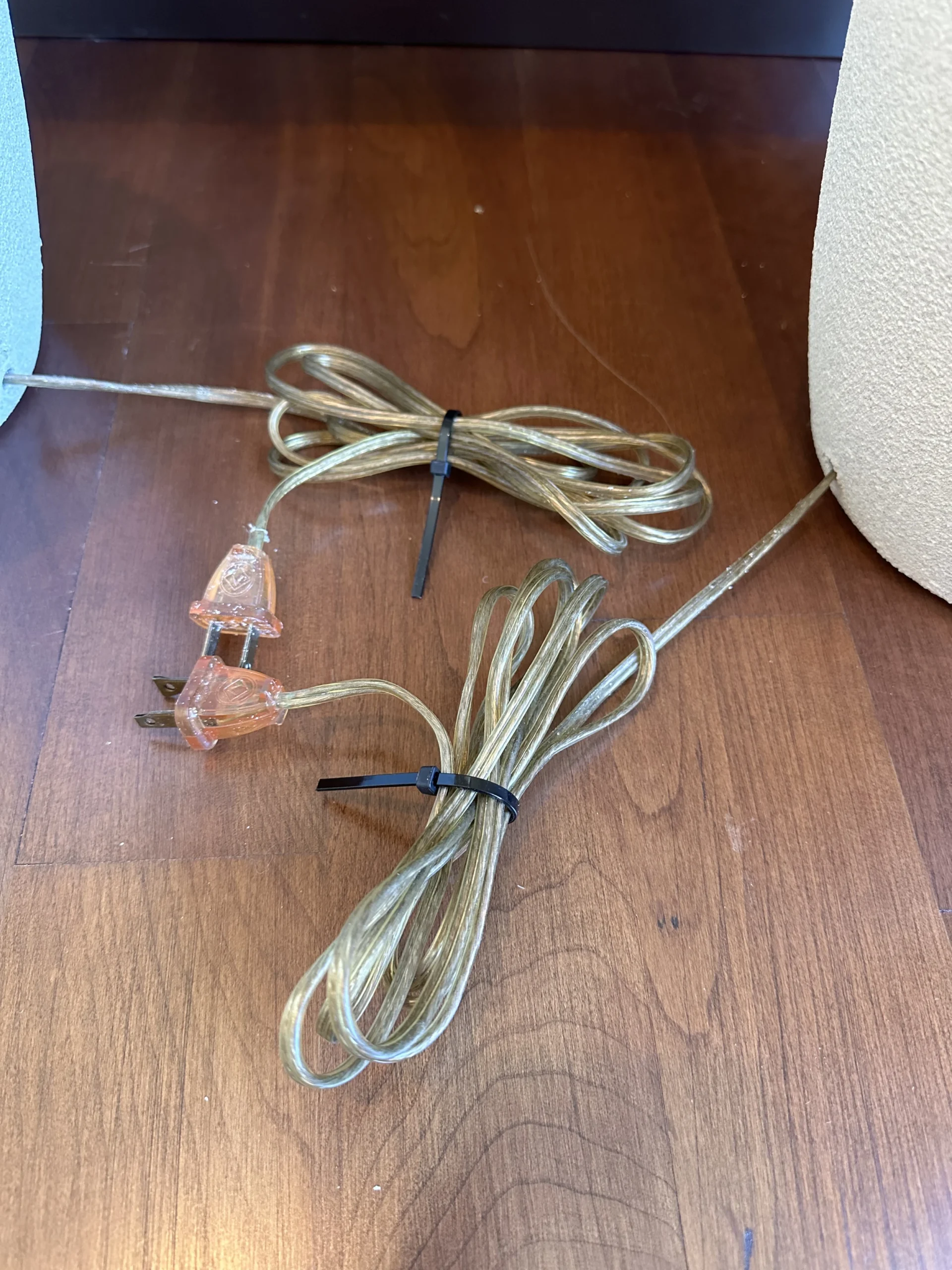 Great vintage condition. A small, somewhat uneven place in the finish on the back of one lamp as shown.