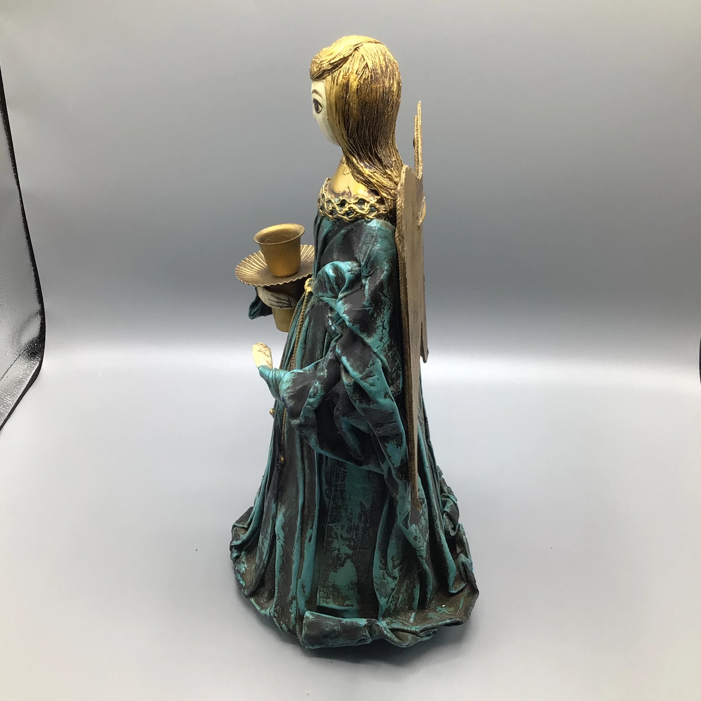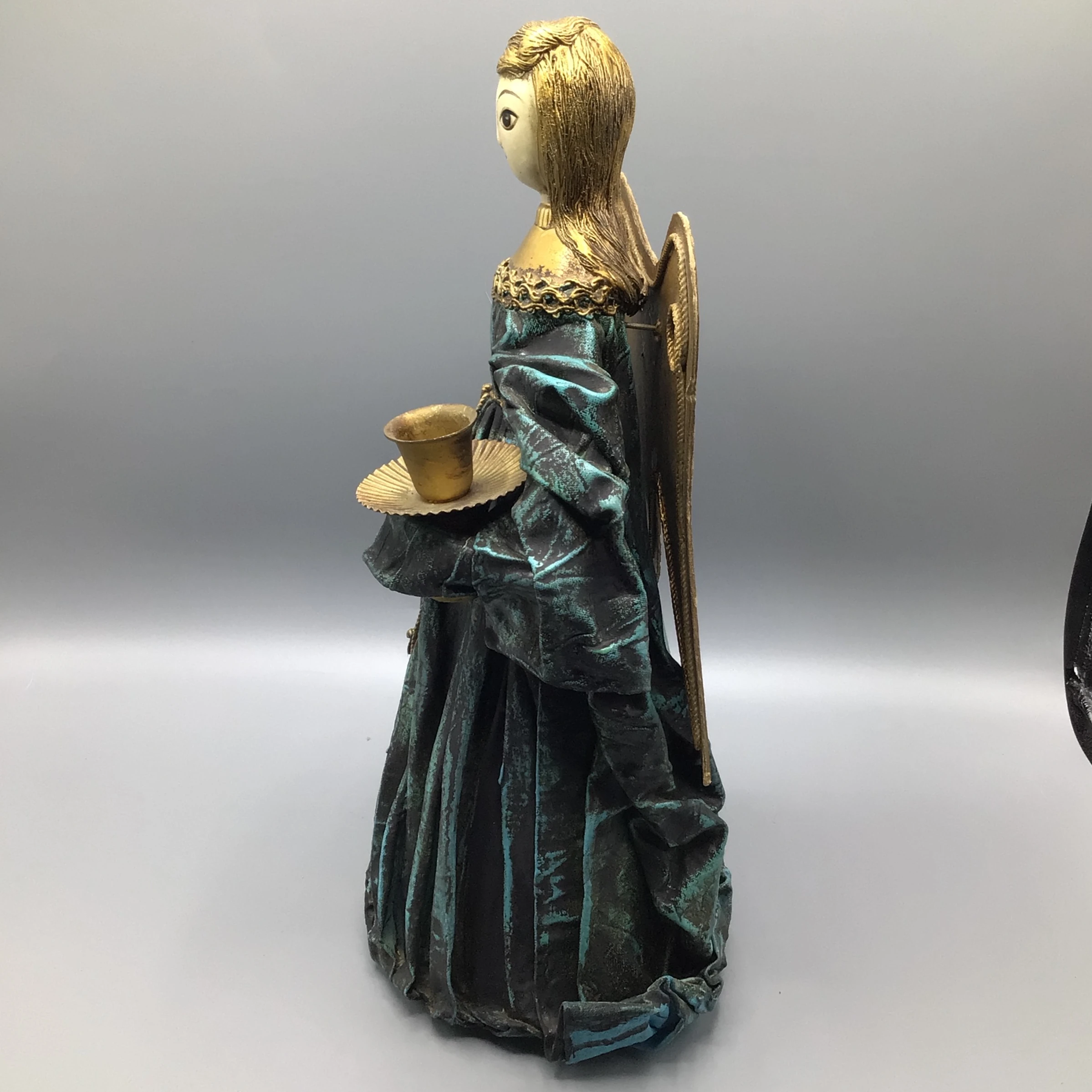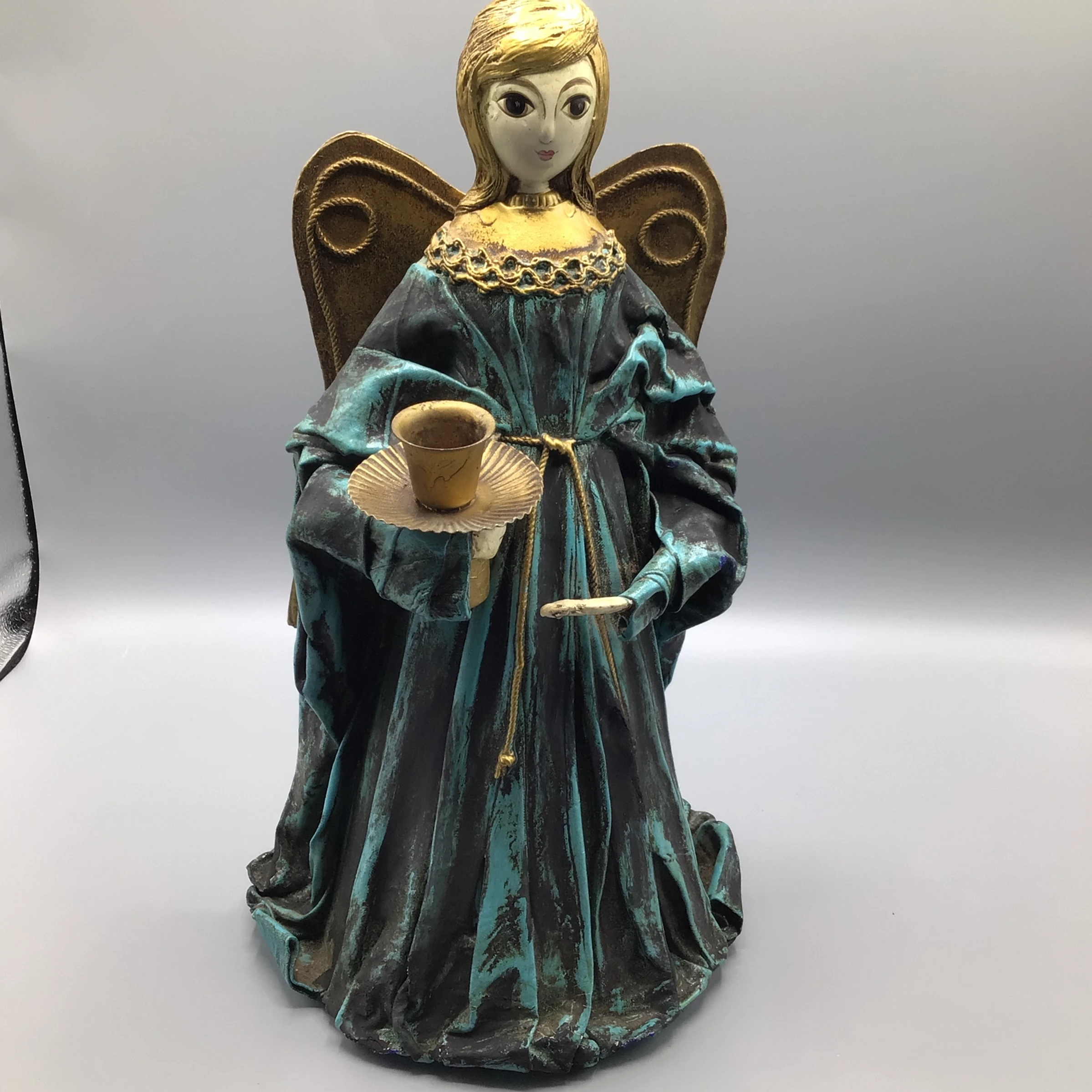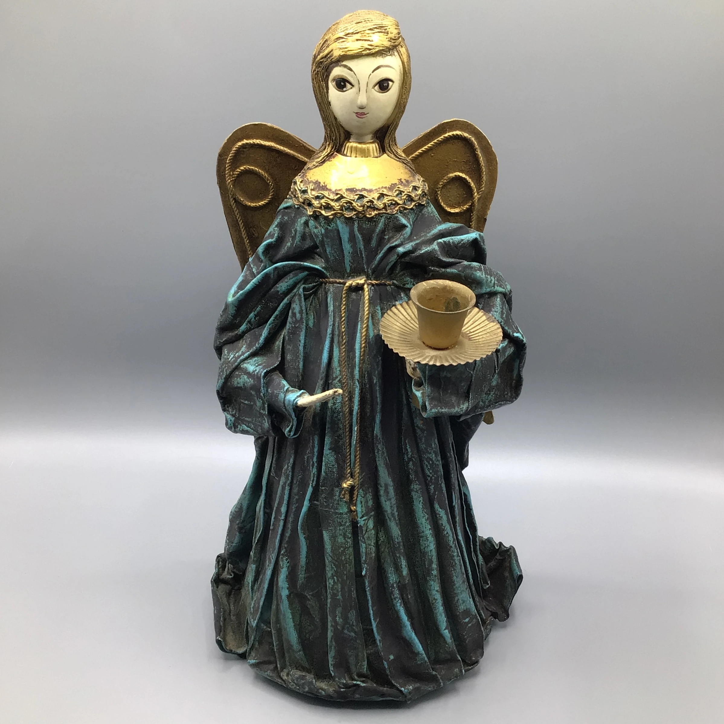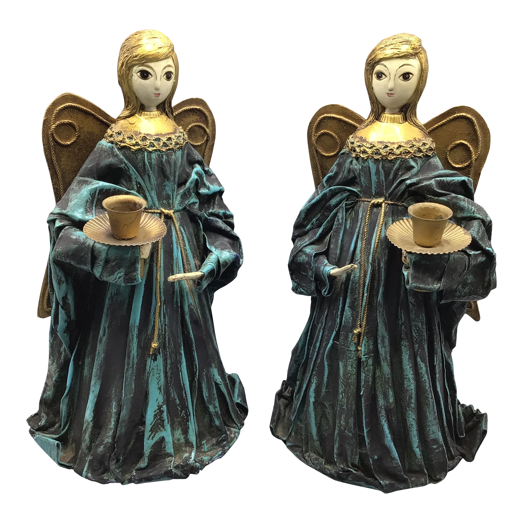 Here are a pair mid 60’s Teal Blue Paper-Mache Angel candle holders.