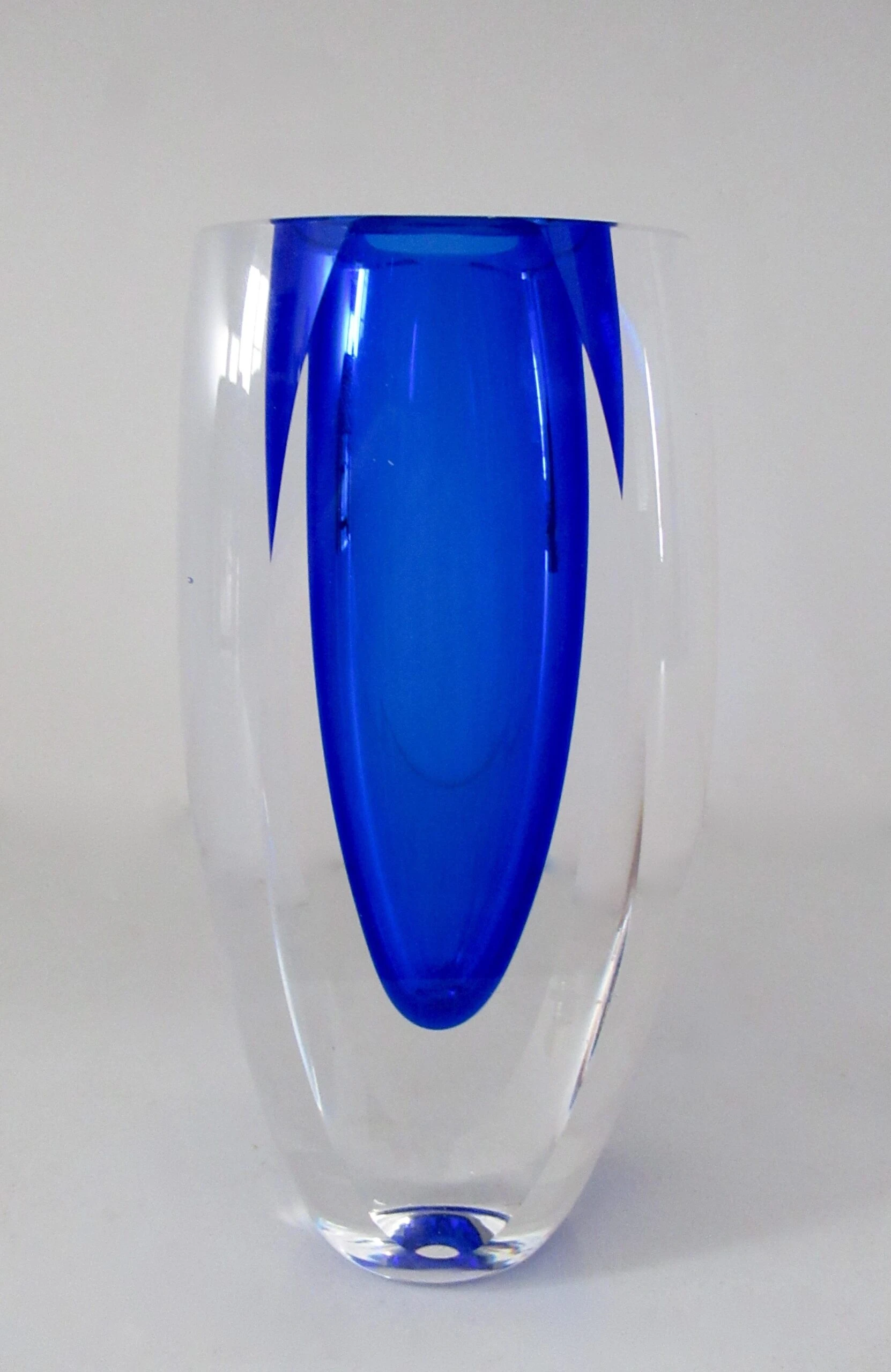 Vintage; C.1970’s Italian, hand-blown Alessandro Mandruzato, ovoid-shaped body and into a flat topped highly polished Murano, in a cobalt to …