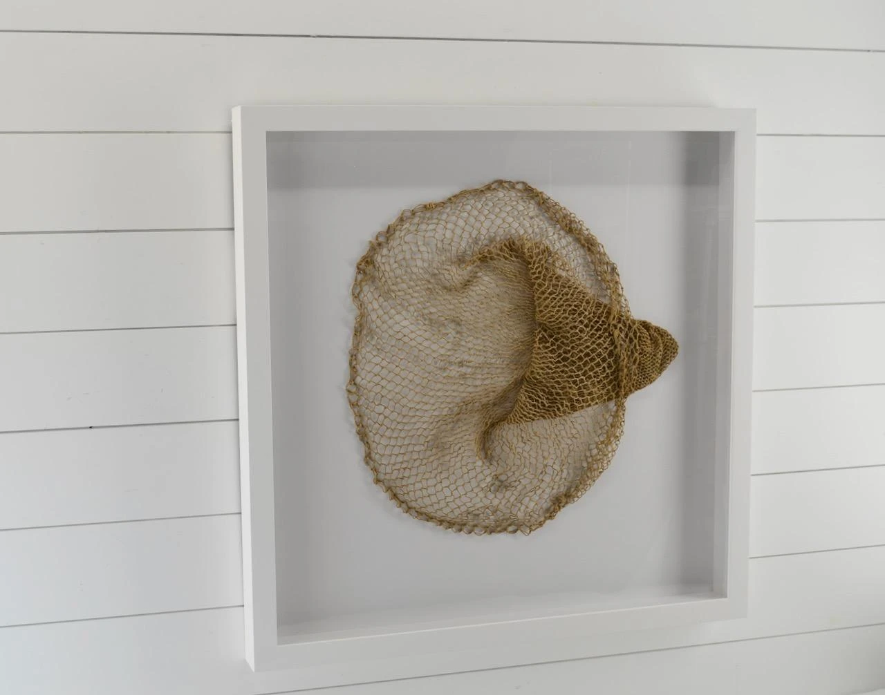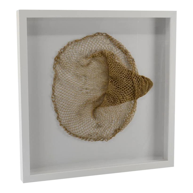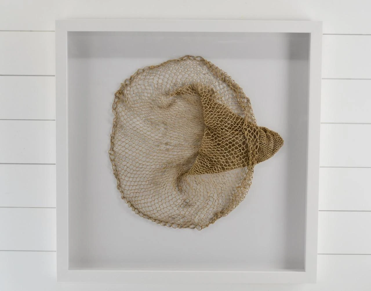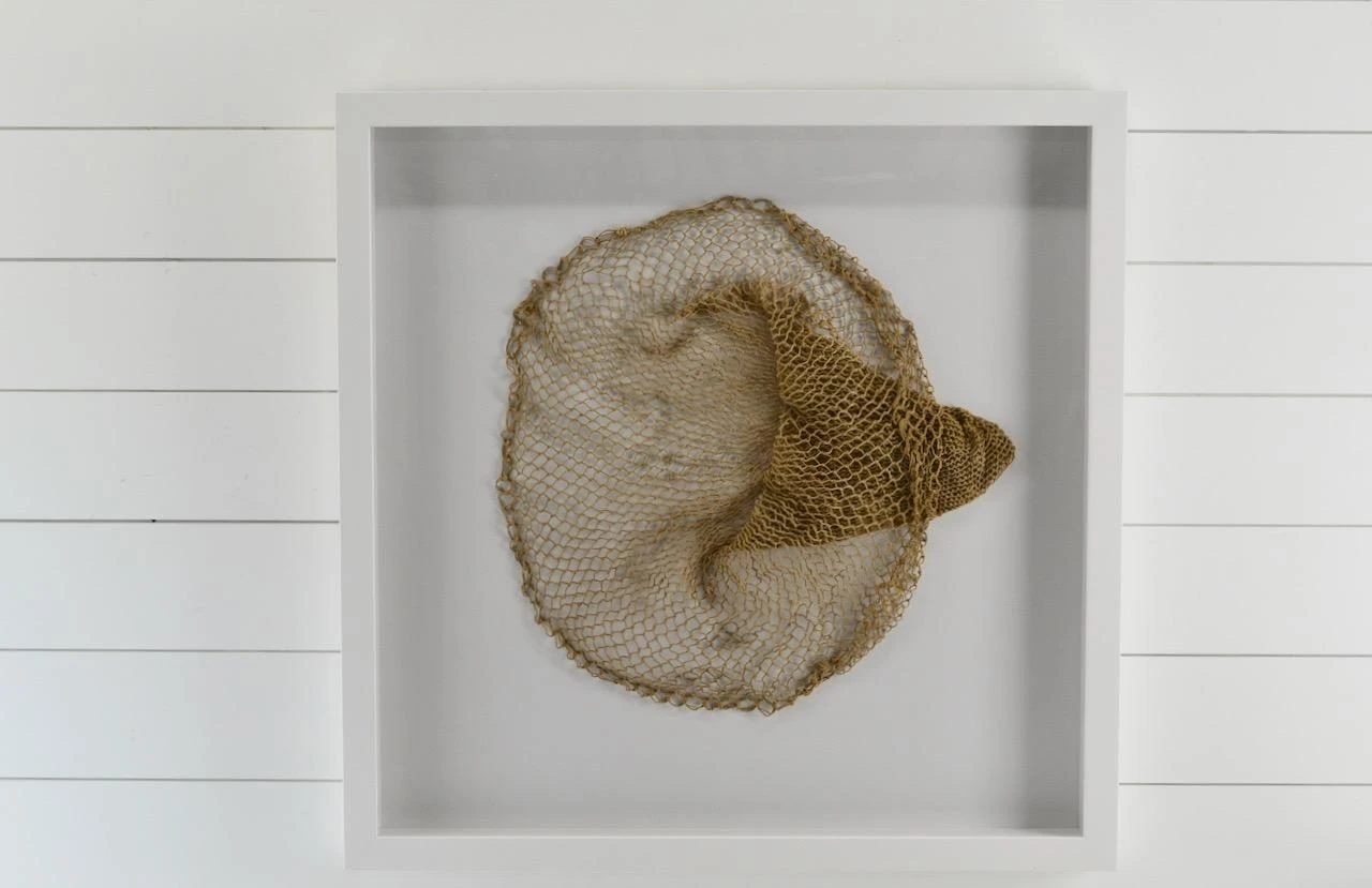 We framed a very nice looking vintage fishing live bait net. Color is great, lots of character.