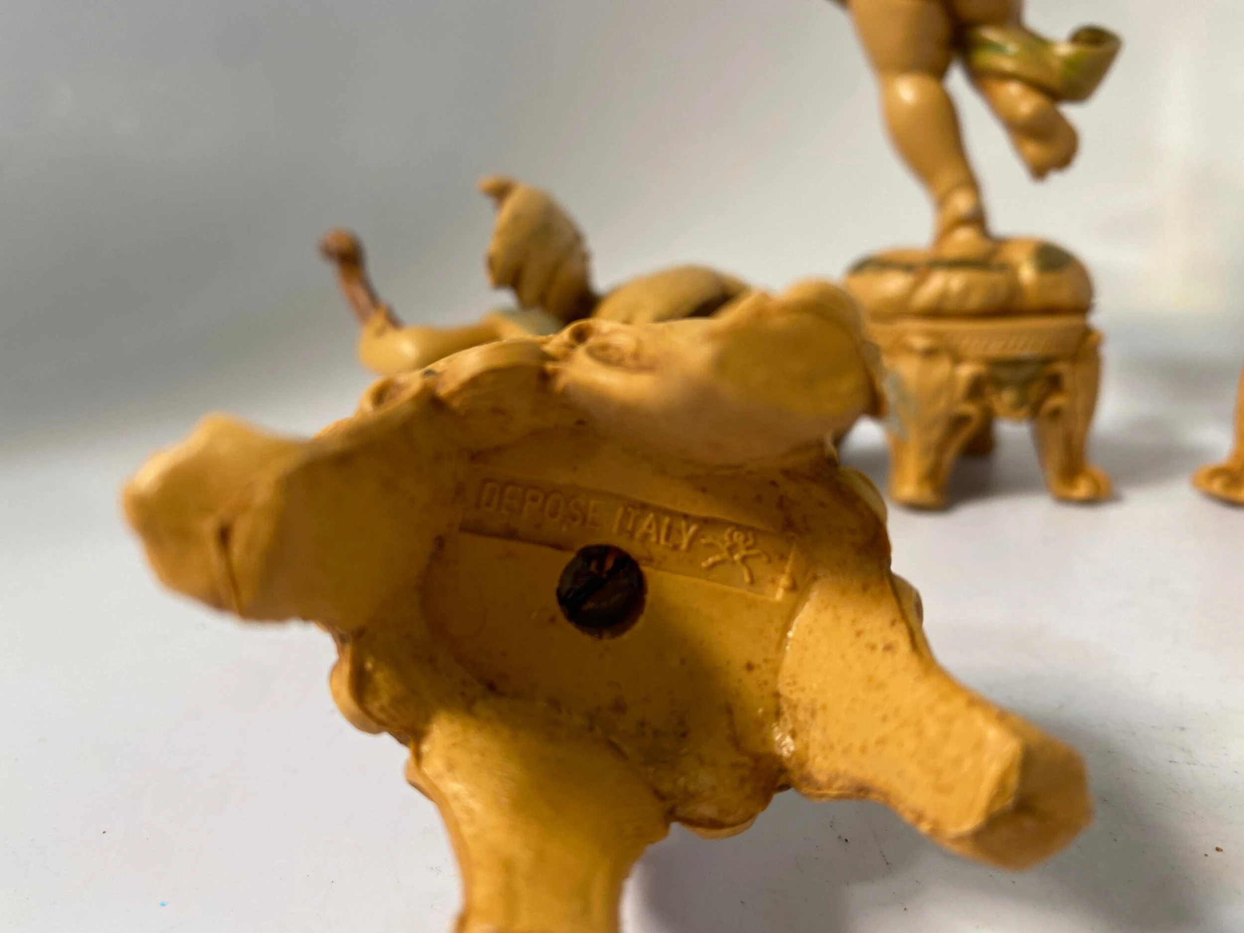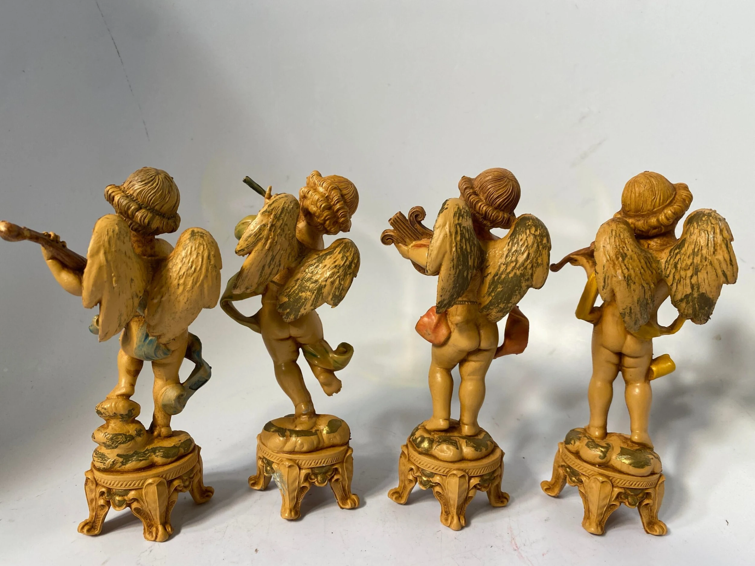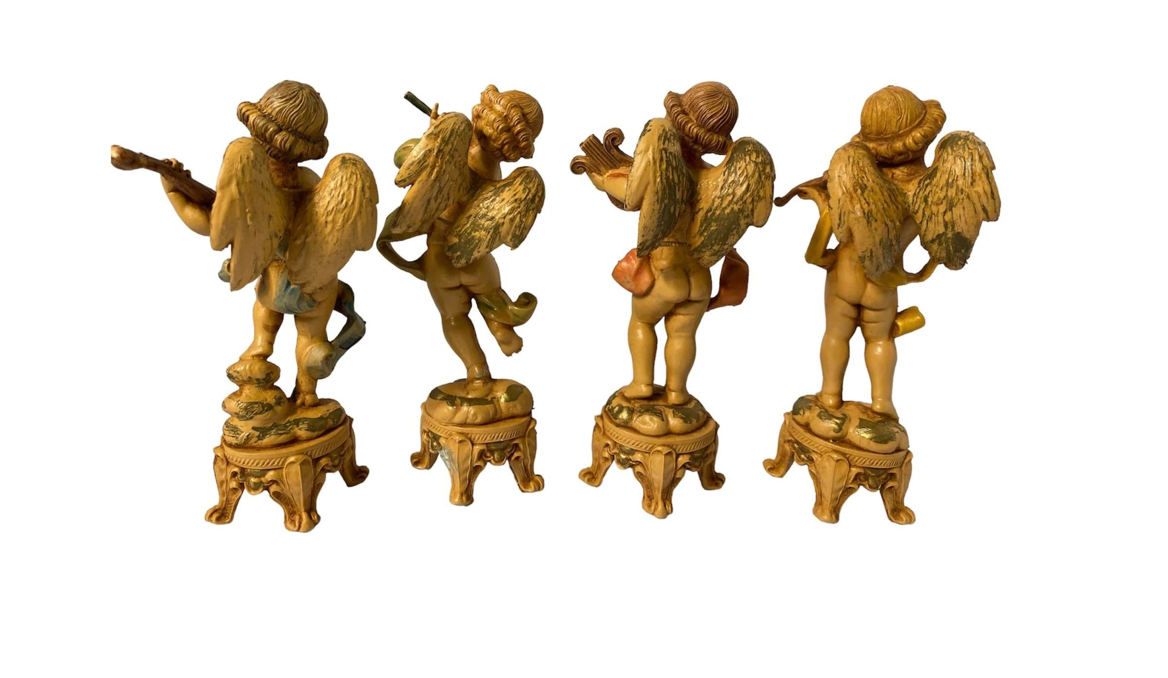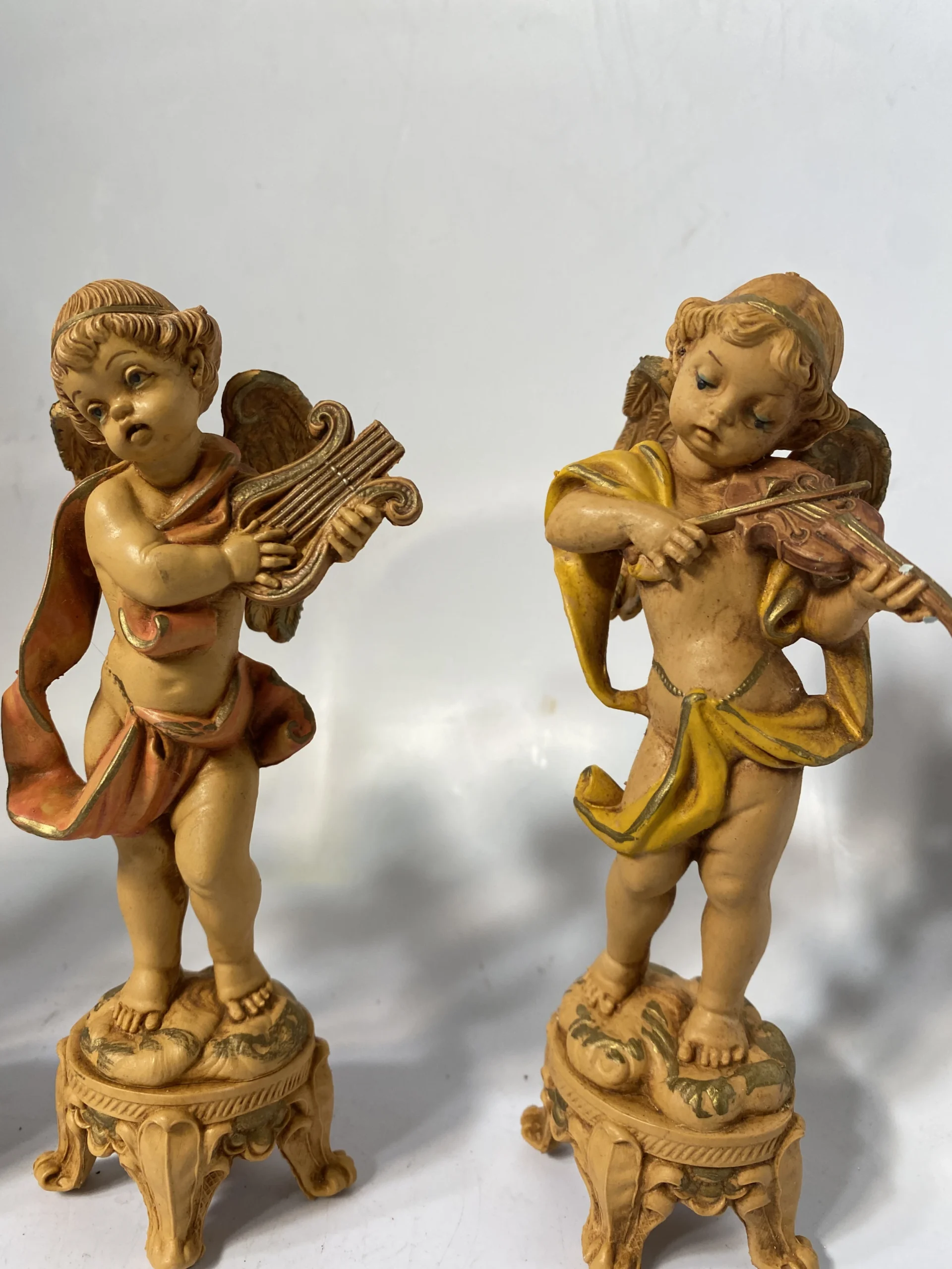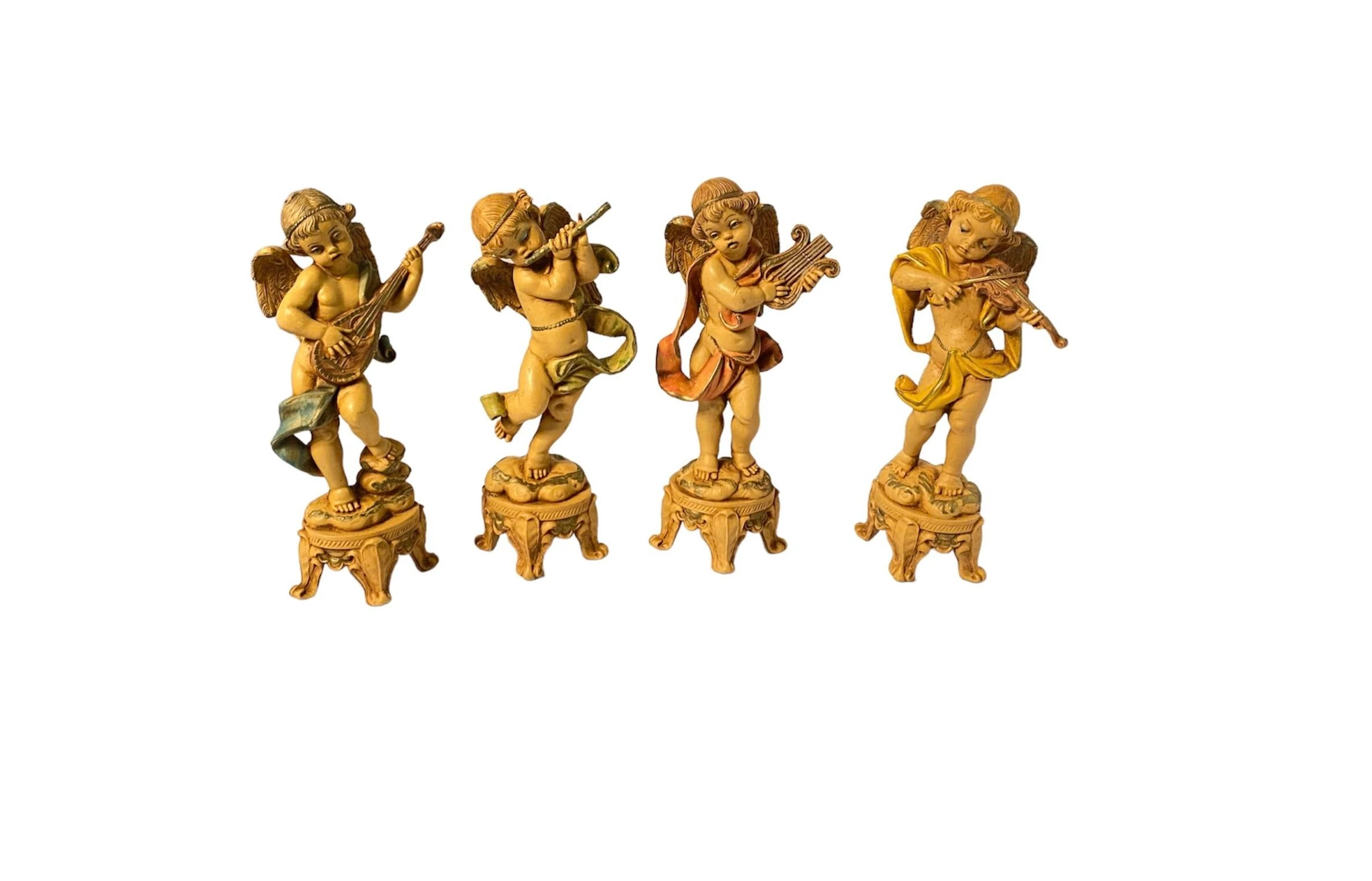 Set of 4 Vintage Fontanini Italian Depose Cherubs playing musical instruments. Collectible vintage Christmas Decor.