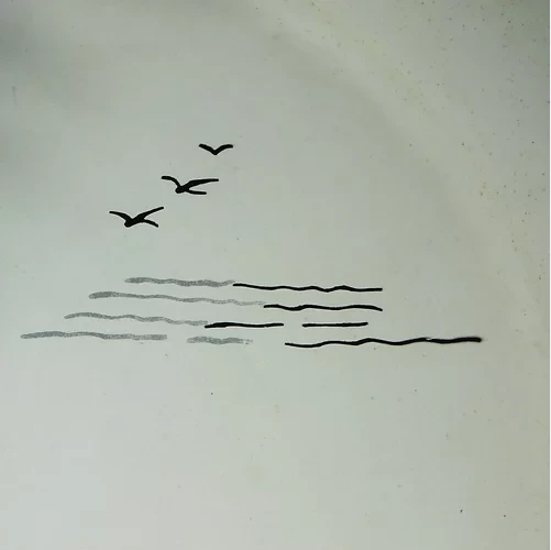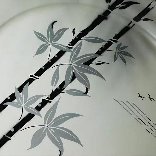 This vintage metal tray features a nice botanical bamboo stalks with seagulls flying in the distance. Great hung as wall …